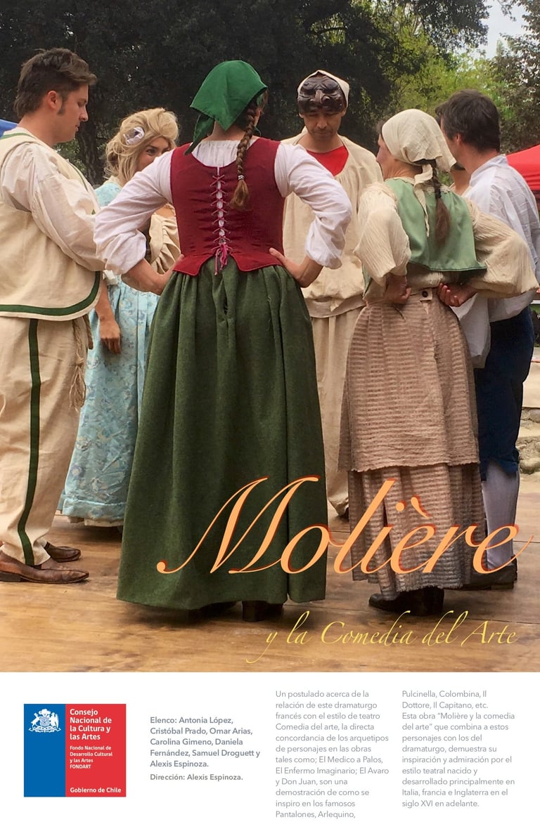 Esta obra es un postulado acerca de la relación de este dramaturgo francés con el estilo de teatro Commedia dell'Arte. La Directa concordancia de los arquetipos de personajes en las obras tales como; El Medico a Palos, El Enfermo Imaginario, El Avaro y Don Juan, son una demostración de como Moliére se inspiro en los famosos; Pantalone, Arlequino, Pulcinella, Colombina, Il Dottore, Il Capitano, etc. Esta obra "Molière y la Comedia del Arte" combina a estos personajes arquetípicos, con los del dramaturgo, y así demuestra su inspiración en este estilo de teatro nacido y desarrollado principalmente en Italia, Francia e Inglaterra a partir del siglo XVI en adelante.