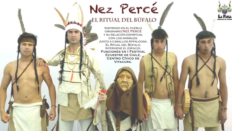 Inspirado en el pueblo originario Nez Percé y su relación espiritual con los animales. Junto a caballos appaloosa el ritual del Búfalo interviene el espacio.